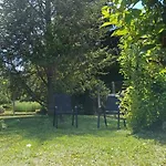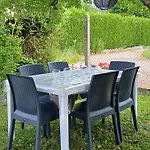 A Les Riceys városi ingatlan önellátáshoz mikrohullámú sütőt, elektromos vízforralót és hűtőt biztosít a kültéri étkezőhelyen.
